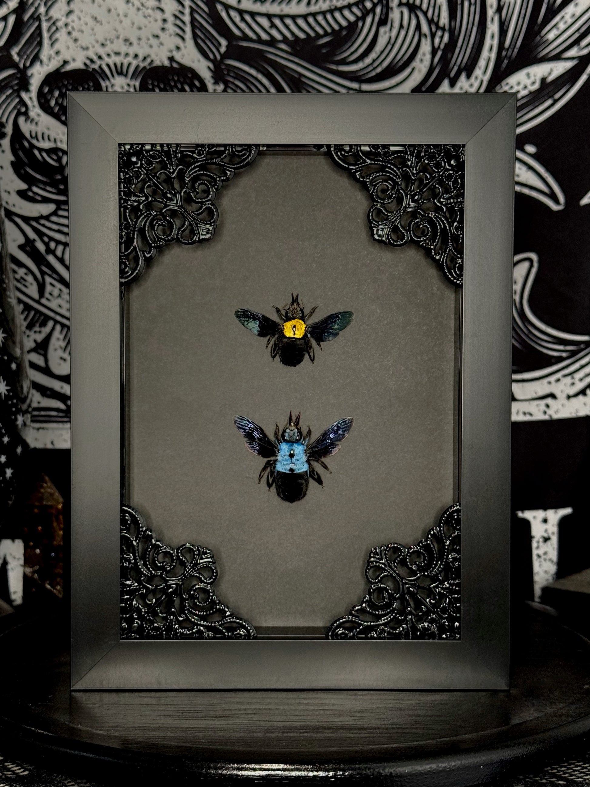 Sustainably sourced specimen in a black shadow box frame with a decal background