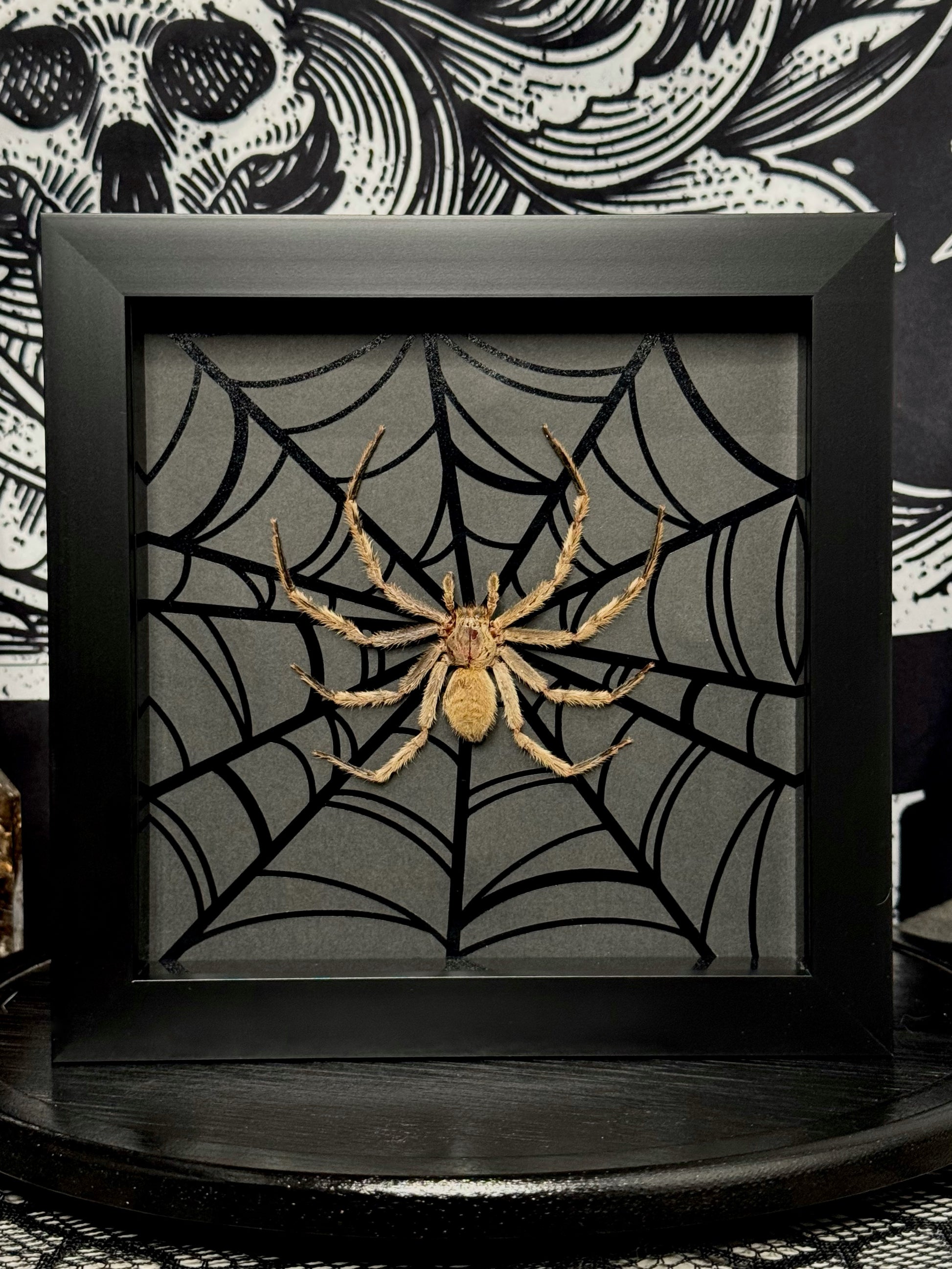 Sustainably sourced specimen in a black shadow box frame with decal background