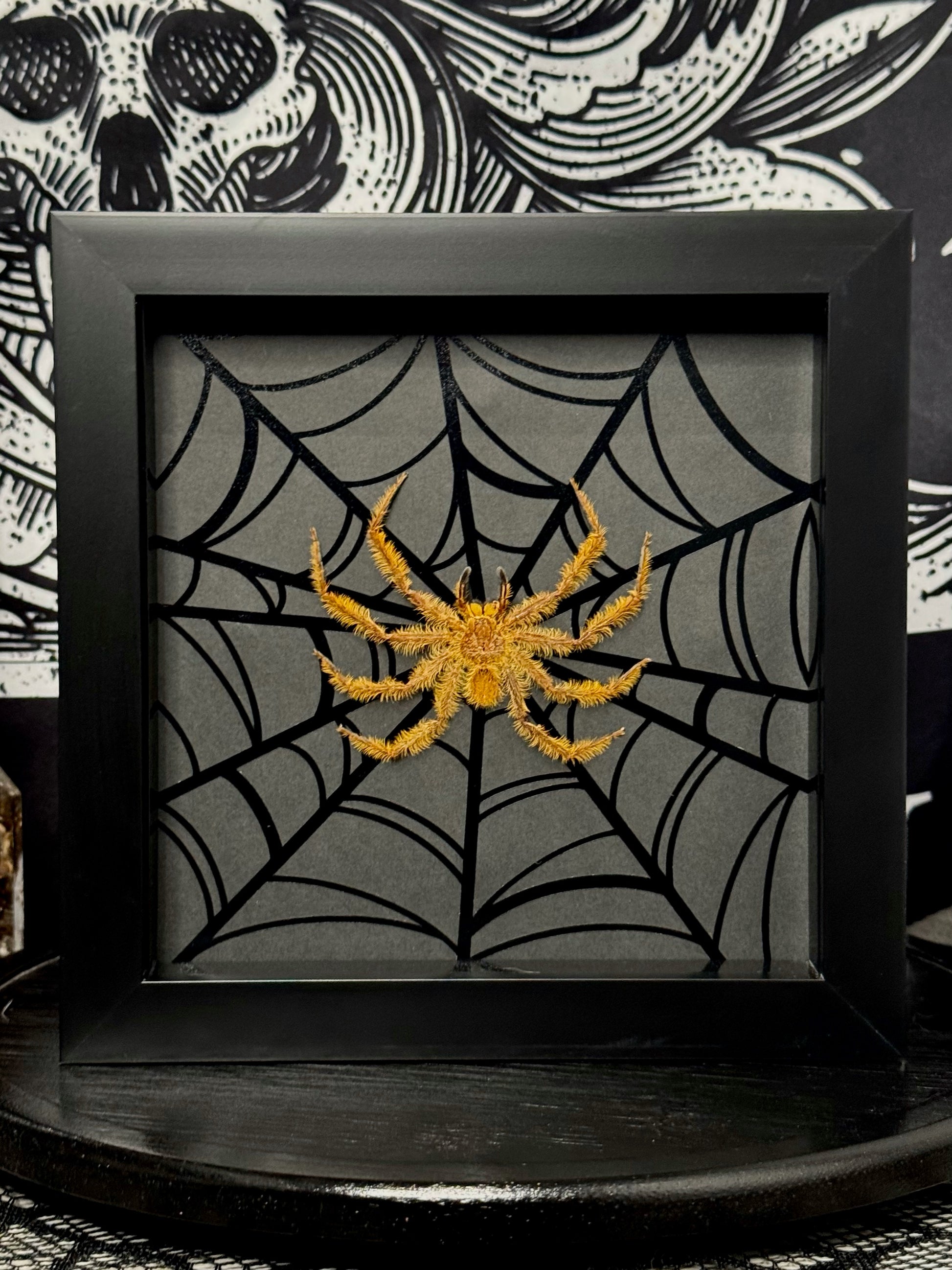 Sustainably sourced specimen in a black shadow box frame with decal background